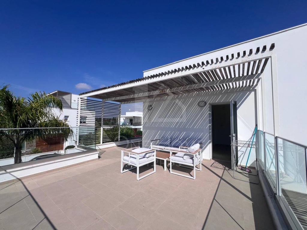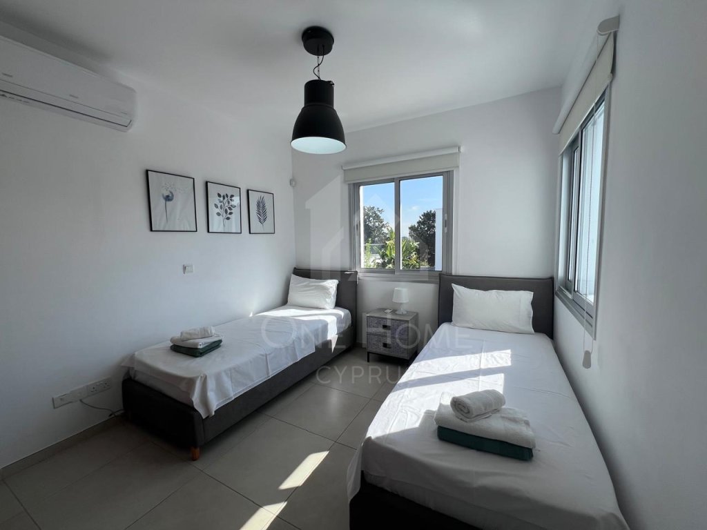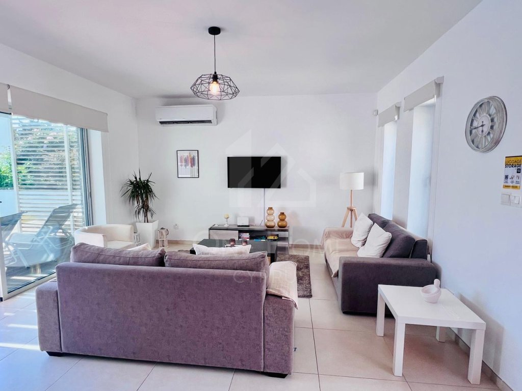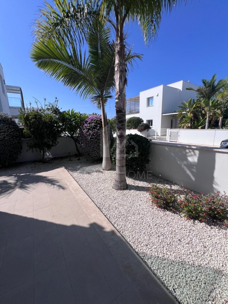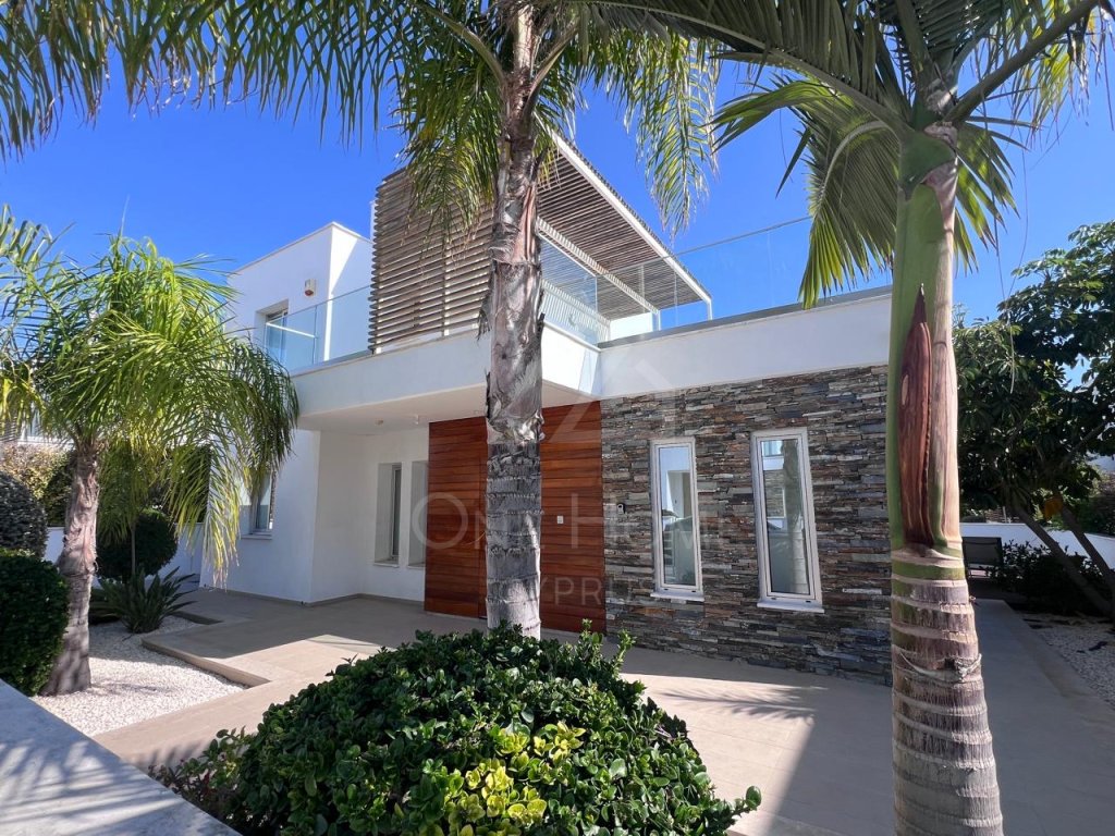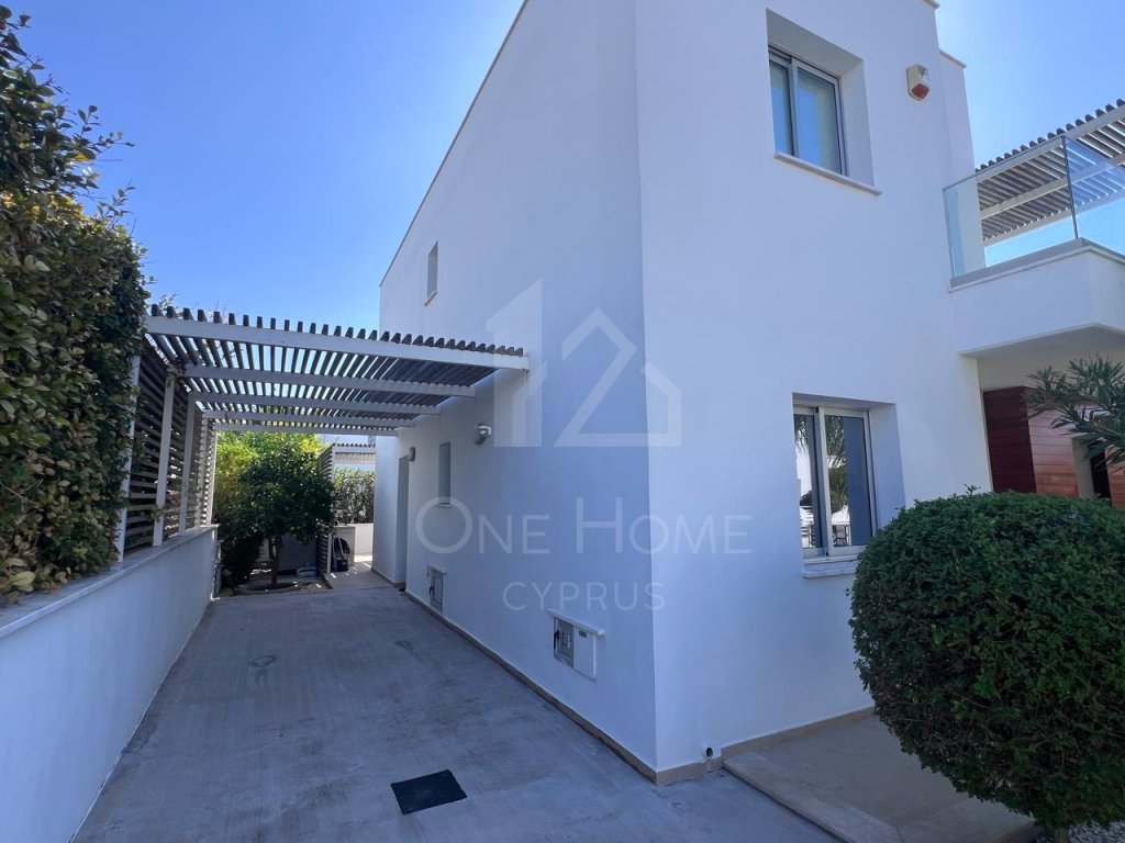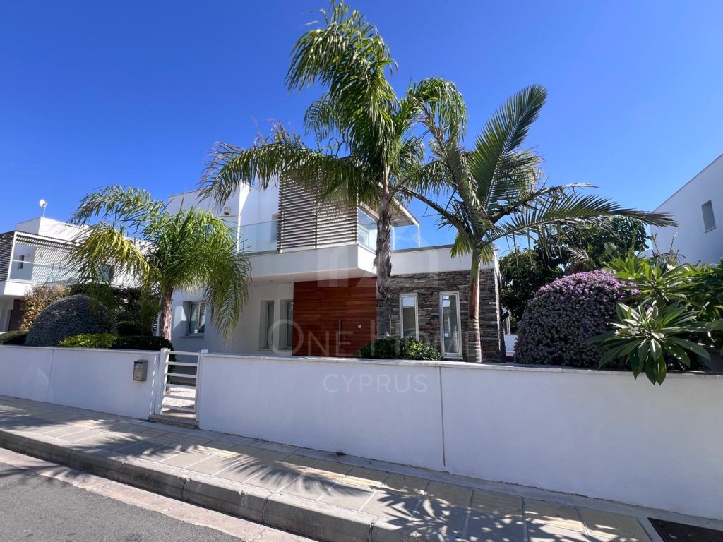 The villa boasts a beautiful private pool, surrounded by plenty of sunbeds for lounging in the Cyprus sunshine. An outdoor dining area completes the setting, ideal for family meals or entertaining under the stars.