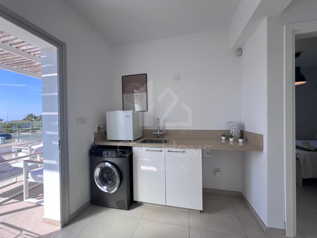 Upstairs, a small kitchenette adds extra convenience for guests.