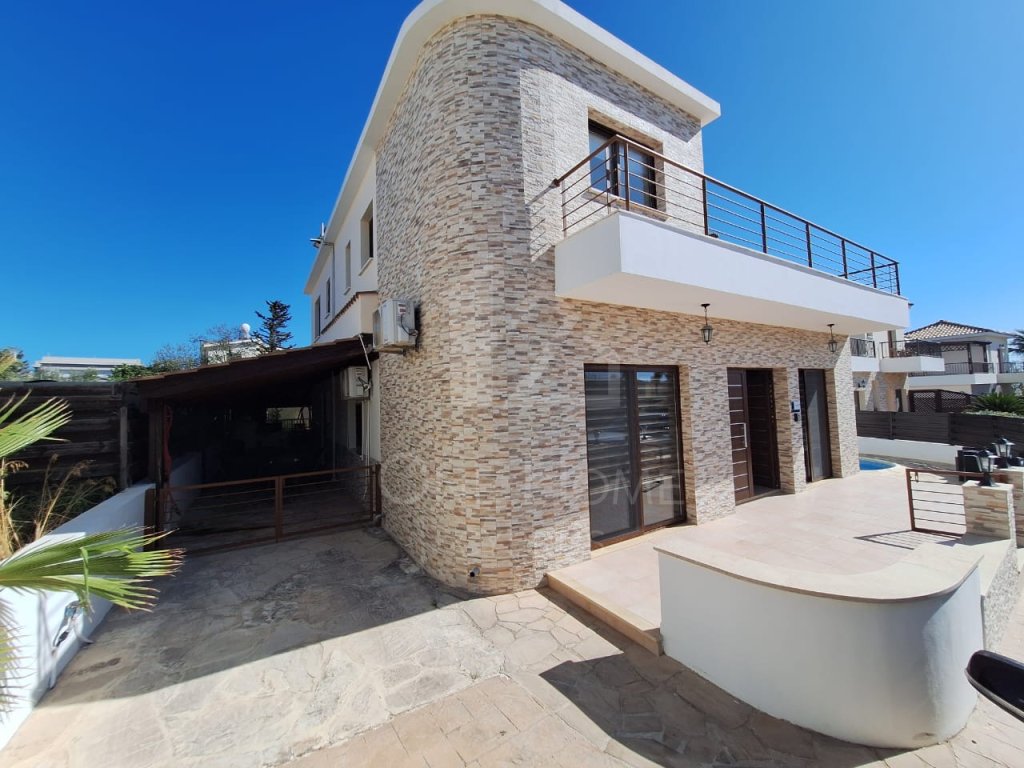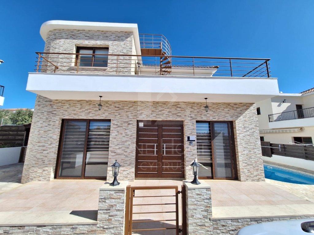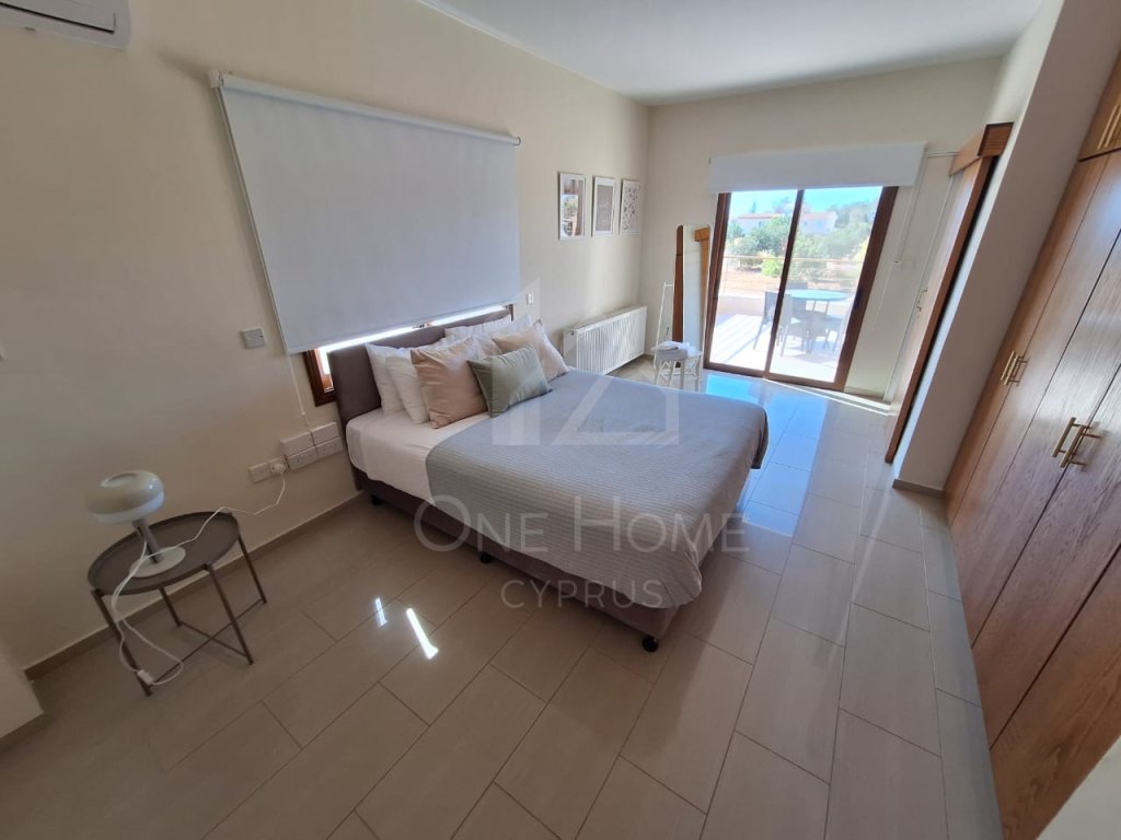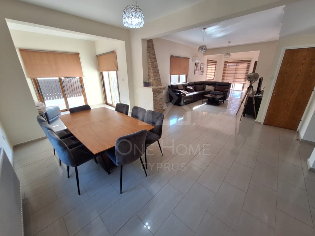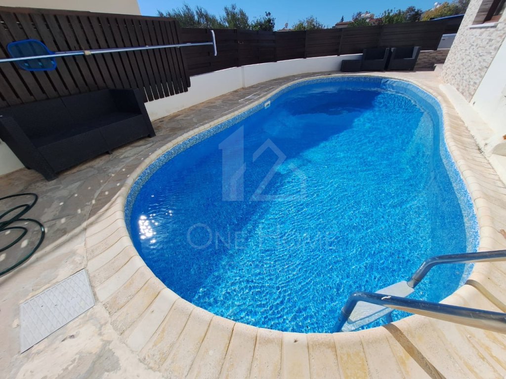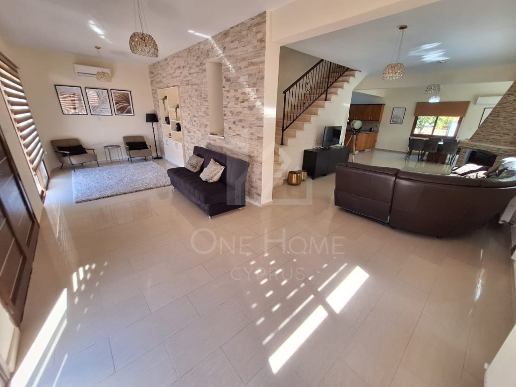 For rent in Tremithousa a 5 bedroom , 4 bathroom of which 2 of them are en-suite is fully furnished, equipped with A/C units through out the property . Its has an open plan living area and in the kitchen the refrigerator and dishwasher are included. A fire place in the living room a lovely terrace and balconies. This villa has its own private pool. The Property is just 5 minutes away from the intentional school of Paphos with convenient access to all amenities. There is onsite parking.